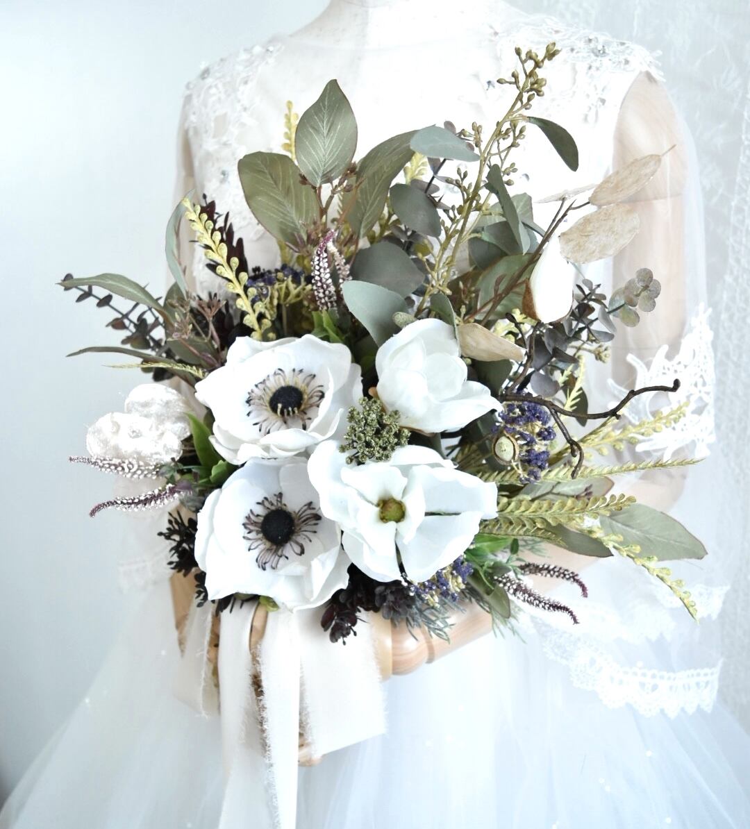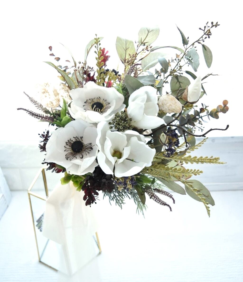 NEW*即納OK ドライタッチのアネモネとマグノリアのクラッチブーケ